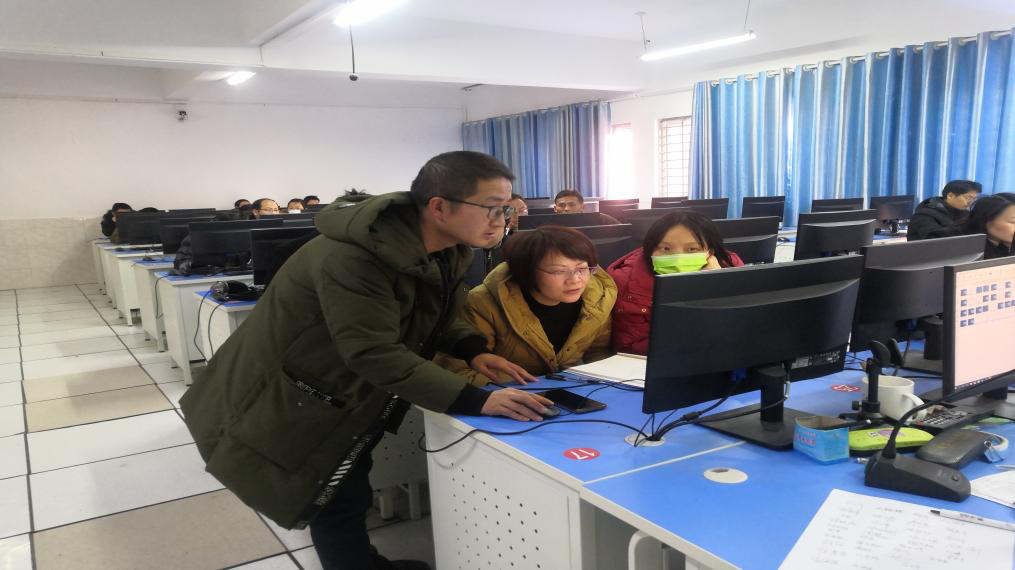 本次培训采用”先学后教”的模式,乔老师先通过远程控制讲解和演示教学内容,老师们再在电脑上进行自主学习实践,乔老师同时现场指导。