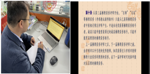 杨老师首先介绍了制定此项文件的目的和主要依据,即促进“名师、名家”进一步提升自我、发挥“名师、名家”示范引领作用、具体落实《孝感市中小学教师梯级专业荣誉管理规定的通知》(孝感政规【2018】3号)文件要求。