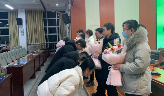 陌上花开教育路,不负韶华共成长。2月7日晚,在学术报告厅,孝感一中组织举行了2019年入职教师结业典礼仪式,见证我校15位青年教师即将从一个起点到达另一个新的起点,开始新的征程。所有师徒结对教师及2019年入职结对教师的指导老师都参加了典礼,党委书记付世俊、副校长辛百魁、教学与研究中心主任李平、教师发展中心主任方春久出席了典礼仪式,仪式由教师发展中心副主任刘艳荣主持。