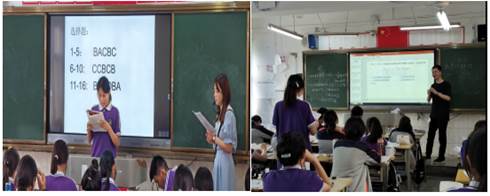 在长达两个月的比赛活动中,来自三个年级、五个学科、十一位教师带来了reading、《生物有共同祖先的证据》、期末模拟测试卷评讲、《分析与综合及其辩证关系》、综合测试卷评讲等11节精彩纷呈的现场课。面对相同的教学内容,11位教师从各自学科特点出发,采用具有学科特色的教学方法,运用科学合理的教学策略,设计多元化、有层次的教学活动,赋予了静态教材以生命活力,使课堂呈现出了不同教学风格,正所谓“一样的课题,不一样的精彩”。