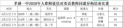 英语学科的三位徒弟教师的汇报课在设计思路上充分体现了以学生为主体、教师为主导的任务型教学的新课改理念。教学中充分运用了预测、速读、精读的阅读技巧,以问题链的形式环环相扣,层层递进,巧妙设置教学情境,突出发散思维,深入解剖话题,升华育人主题,顺利达成教学目标。课堂上学生思维活跃,积极发言,当堂检测的游戏环节精彩刺激,课堂气氛十分活跃。英语是一门外语,想要熟练掌握,必定需要开放的课堂营造自由向上的语言环境,让学生爱上英语。三堂汇报课得到了听课教师的一致好评,展示了我校师生良好的学科素质和学习水平。