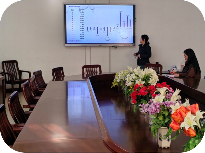 值得一提的是,刘明娟老师精心制作的PPT以清晰的逻辑框架、直观的数据图表和详实的案例展示,赢得了在场教师的一致好评。教师发展中心副主任刘艳荣在点评中高度肯定了刘老师的分析质量,称其“内容扎实、方法科学、呈现专业,为青年教师提供了可借鉴的范本”,并强调班级质量分析是教学反思的重要环节,鼓励青年教师将今日所学融入日常实践。