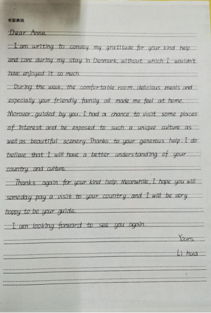 从参赛作品来看,绝大部分学生的书写认真规范,字迹流畅端正,卷面整洁漂亮,令人赏心悦目。这次英语书法比赛提升了学生认真书写英文的意识,促进了学生良好的书写习惯的养成,为学生学好英语打下了坚实的基础,丰富了学生校园文化生活。英文书写需要常抓不懈,今后,英语组将继续坚持把书写练习贯穿于整个英语教学之中,争取更大的进步。
