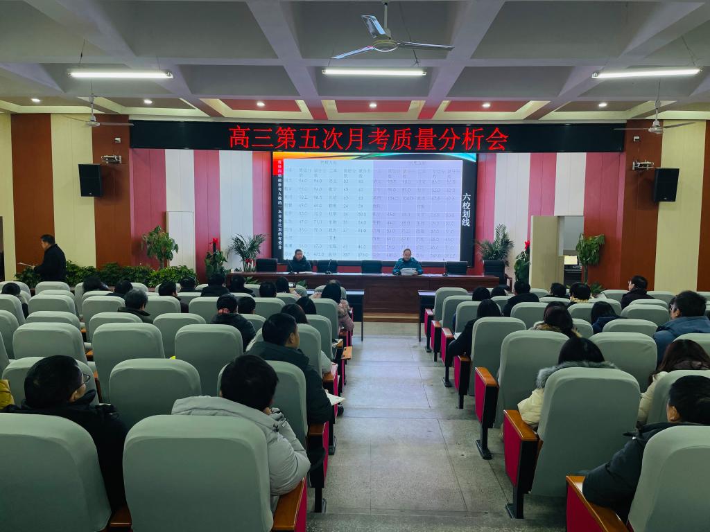 2021年1月6日星期三课间自习,高三年级在学术报告厅召开第五次月考质量分析会。会上,年级负责人杨顺云高屋建瓴地分析了此次考试的情况,从原始分和赋分的角度对总分进行科学分析。同时,杨主任将各科在六校进行排名,表扬政治、历史等先进备课组。政治组组长于老师介绍了备考过程中的成功经验,大家受益匪浅。接着,杨主任对此次考试中超额完成任务的先进班级进行表彰,并给予物质奖励。最后,杨主任也指出了这一个月以来我们备考过程中存在的问题,并列出了问题清单,包括师德师风、学风建设、常规检查、包保工作等方面。