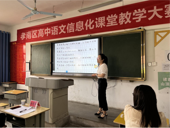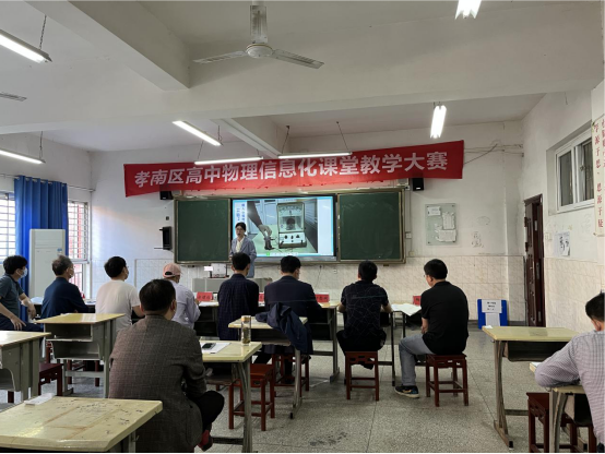 在“防疫”与“双减”的背景下,为进一步推动我区基础教育教学改革,促进信息技术与课堂教学融合创新,提升教师的执教水平,提高课堂教学效率。2022年5月6日,孝南区高中语文、物理、政治学科信息化课堂教学大赛在我校成功举行。本次大赛由孝南区教学研究室主办,孝感一中承办,教师发展中心主任方春久,副主任王飞组织了本次活动,教研室洪新潮主任,学校领导张胜华副校长全程参与了本次大赛。