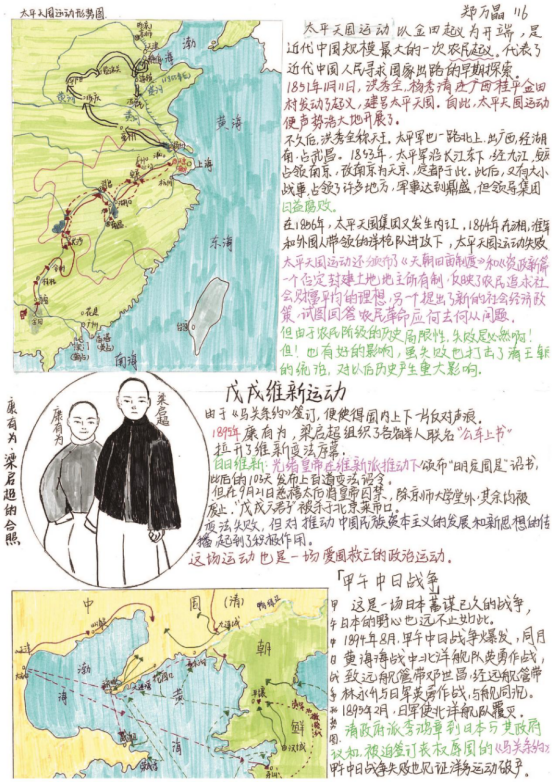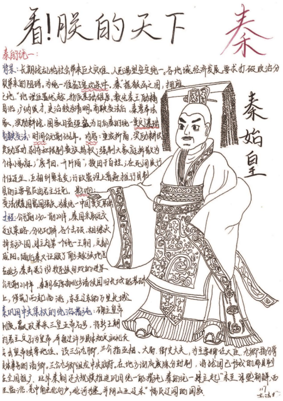 本次参赛对象为高一年级历史类班级学生。学生利用课余时间在高中历史统编教材上册中挑选1-2幅图像史料进行临摹,并对所选图像做出合理的解释。四个班级学生共完成一百余幅作品,经备课组老师集中评选,根据作品的准确度、完整度、创意度与美观度,最终评定一等奖十名、优秀奖十二名。以下是此次“左图右史”竞赛获奖同学名单: