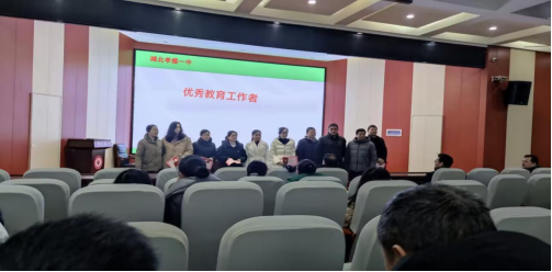 最后,付主任宣读高一上学期表彰名单:教学质量优胜奖,优秀教育工作者,优秀班主任,优秀班级,优秀备课组等,由付世俊书记和谢主任给获奖教师颁奖。