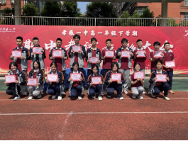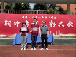 大会第二项由付主任、李主任给学生颁发奖状并合影留念。