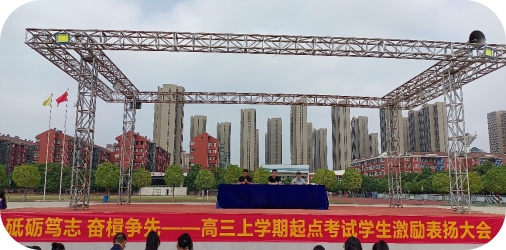 15日上午课间自习,高三年级召开了起点考试表彰会。级部主任潘俊军宣读了在本次考试中取得优秀成绩和进步显著的同学名单,年级在祝贺他们取得好成绩的同时,也为他们颁发了证书并合影留念。