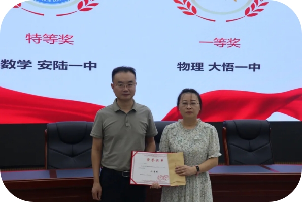 本次联考试卷质量得到了协作体15校的充分认可,综合联考反馈及推优规则,评选出了特等奖、一等奖和二等奖。上图为校长夏以祥为优秀命题教师颁发荣誉证书和奖金情景。