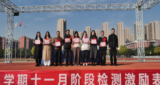 在热烈的掌声中,受表彰的个人和班级代表依次上台,从校领导及年级管理团队成员手中接过荣誉证书和奖品并合影留念。他们的成功,不仅是个人的荣耀,更是全体同学砥砺前行的榜样。主持人号召全体同学向受表彰的同学学习,见贤思齐,取长补短,在未来的学习道路上共同进步。