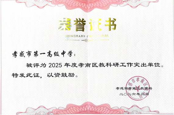 近日,孝南区教科研工作会议圆满落幕,我校凭借扎实过硬的教科研功底、丰硕亮眼的教研成果,成功获评“孝南区教科研工作突出单位”,这份沉甸甸的荣誉,是全区教育系统对我校教研工作的高度认可,更是我校作为省级示范高中,坚守教研赋能教学、深耕内涵发展的有力见证。