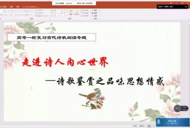9月28日周三下午第三节课,高三语文组教师在集体备课一室开展了《鉴赏诗歌的情感》集体备课研课活动。由于疫情影响,有三位老师封控在家,通过线下加线上形式实时同组备课,组员全部提前到齐,利用腾讯QQ进行屏幕共享,三位老师被封控在家的老师也提前就位,积极参与了教学研讨。
