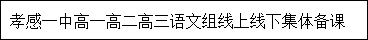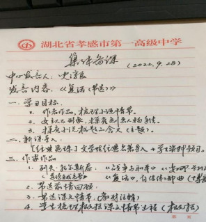 为了进一步提升语文组整体教学质量,提升教师的专业素养和教学技能,在新冠疫情反复无常、复杂多变的情况下,在学校领导的精心安排和布署下,孝感一中语文组自2022年9月10日以来,积极开展个性化的线上线下同步集体备课活动,充分发挥集体智慧共渡难关,让教研活动线上线下同步有序进行。语文组教师们乐于担当、坚守初心、无惧疫情、潜心教学的精神赢得了广大师生及家长们的一致称赞。