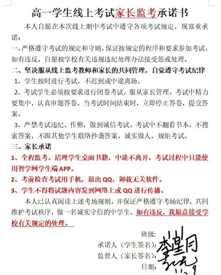 “没有解决不了的问题,只有想不出的办法。”为了本次考试高一年级组做了大量的准备工作,统计了能够监考的家长,将有家长监考的与无家长监考的学生分开考试,签订了诚信考试和监考承诺书。负责年级教学的潘俊军主任精心编制了使用流程,方便了大家的使用.从网上考试,网上阅卷,最后系统成绩分析,导出成绩,收到了非常好的效果。