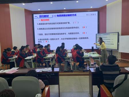 会议由两个时段组成。上午,孝感一中谢松老师和十堰郧阳中学何晓慧老师分别展示课题为《细胞的物质运输》的二轮复习示范课。课后,十堰市教科院沈舰教研员和孝感市教科院熊伟教研员分别就两位老师的课进行点评。两节课都很好的关注了高考评价体系的三条线;较好的凸显二轮复习和一轮复习的差别。建议老师们在二轮复习备考中精选优质例题,多多关注生物公众号、生物学杂志等挖掘情景素材,强化基础知识和长句作答的搭配。