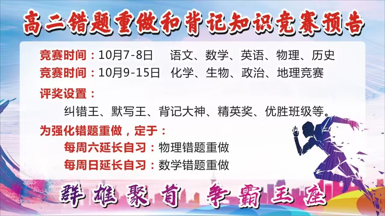 为进一步强化学生学习落实和知识消化巩固,年级正式推进“错题重做,以赛促学”活动。具体指导意见分两部分: