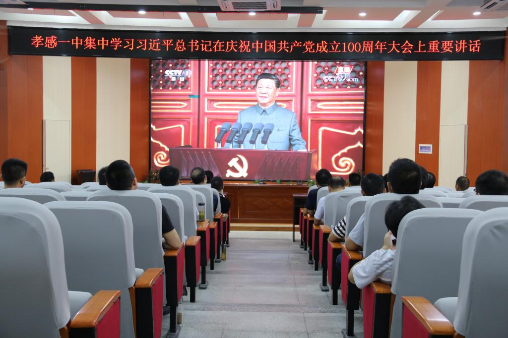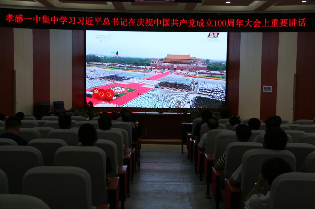 7月1日上午8点,孝感一中组织在职党员干部、离退休老党员分别在学术报告厅、二号会议室集中观看了在北京天安门广场举行的庆祝中国共党成立100周年大会现场直播节目,认真聆听了习近平总书记的重要讲话。