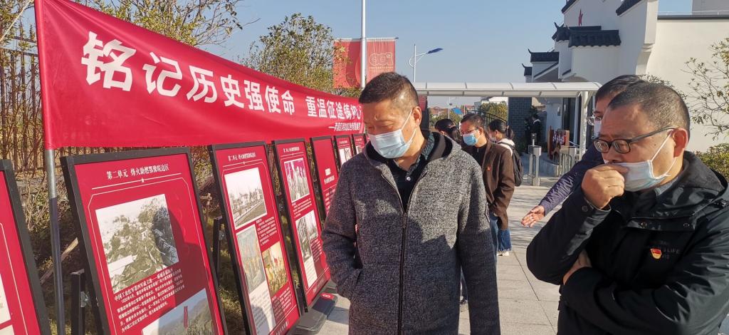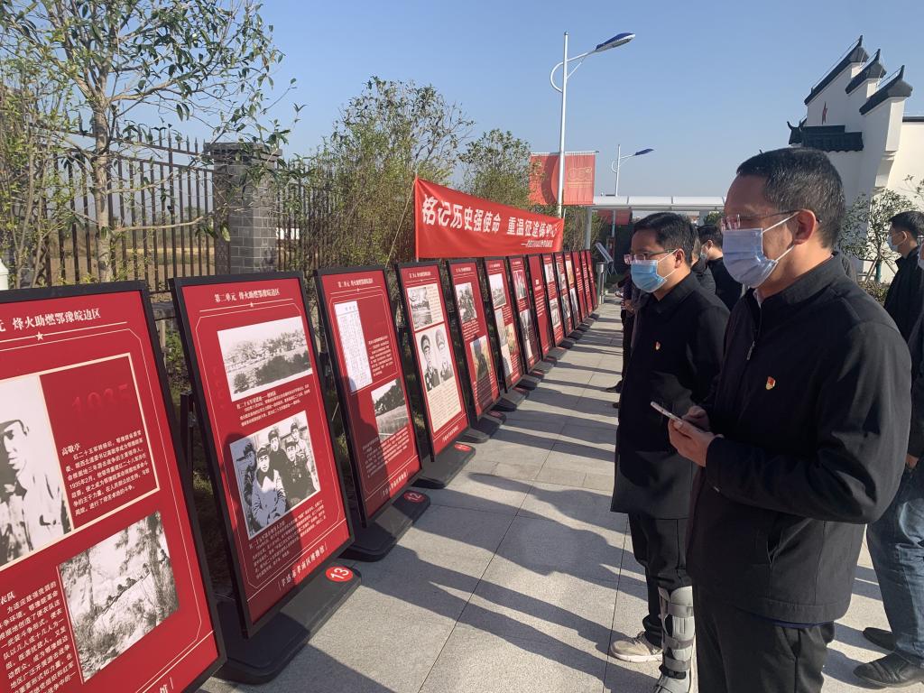 经过40多分钟的车程,20名党员干部在校党委委员章雄林、第二党支部书记方火生的带领下,衣着整齐,戴口罩,佩党徽,来到王新亭将纪念馆。当地政府将纪念馆进行改造整修,纪念馆的面貌为之一新,院落干净卫生,屋舍俨然,花木整齐,王新亭将军纪念碑在阳光的映照下显得格外高大巍峨,令人顿生景仰之情。走进庭院,一排排有文字配照片宣传栏向参观者讲述了王将军经历的重大革命事件,真实再现中国共产党领导中国革命从弱小到壮大的光辉历程。