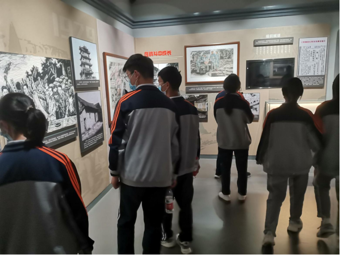 在王新亭将军士纪念碑下,全体学生满怀崇敬之情,庄严肃立,向革命先烈集体默哀,表达了对革命先烈的深切缅怀;在鲜红的团旗面前,庄严宣誓,重温入团誓词;瞻仰了馆内陈列的王新亭将军的书籍、衣物、生活用品、亲笔信件、文件、枪支、望远镜等,一张张黑白照片,诉说着革命先辈在风华正茂的时期,无私无畏,勇于奉献的英雄事迹。