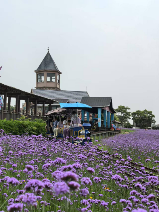 园区内,各色鲜花竞相开放,美不胜收。马鞭草花田延展成紫色海洋,玫瑰园内各色月季馥郁芬芳,向日葵迎着似火骄阳绽放。平时忙于工作的老师们,职工们,或是化身摄影爱好者,举起“长枪短炮”定格春光,或是化身模特与花合影,与蝶共舞。