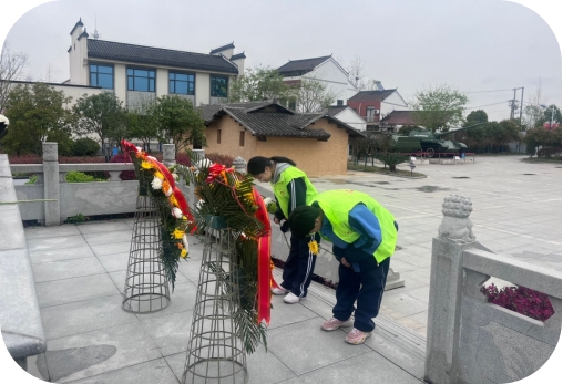扫墓寄哀思,缅怀先辈情。学生们整齐列队,向王新亭将军塑像敬献花篮并鞠躬默哀。