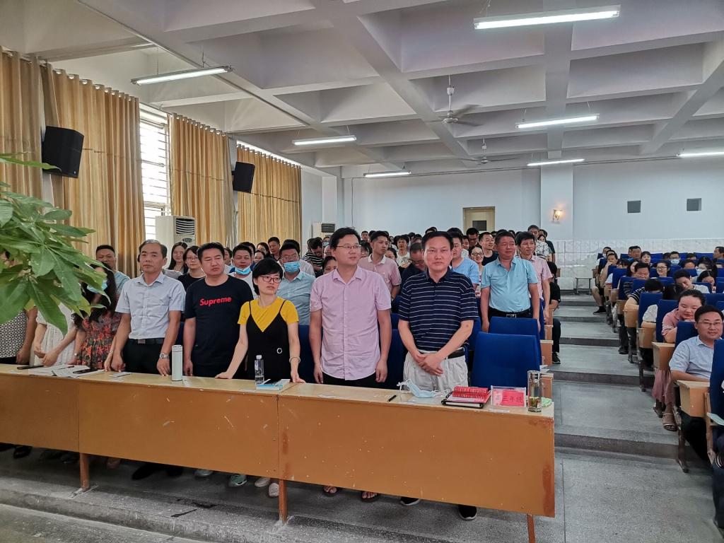 8月30日,在孝感一中新学期开学动员暨暑期表彰交流大会上,高三年级杨主任别开生面独树一帜,带领全体高三老师举起右手庄严宣誓,“ 上下齐心苦奋斗,不破四百誓不休 ”,整齐响亮的誓言表明了高三全体老师勠力同心决胜高考的坚定信念,把会场的气氛和高考备考的热情推到了燃点。