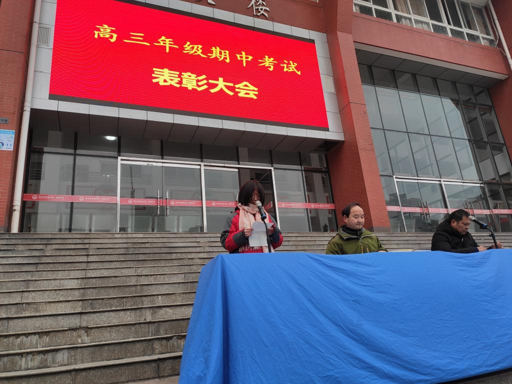 寒冬瑟瑟,阻挡不了我们心中如火的热情,12月3日,高三年级在升旗广场上如期召开期中表彰大会,对期中考试斩获一本的400多名学子进行表彰,奖品为一个笔记本,一支笔。杨主任提醒同学们,拿到奖品后,要把笔记本放在笔上,寓意为必上一本。奖品普通,但寓意深刻,寄予了年级对学子们的厚望,以此激励同学们再接再厉,耐得住寂寞,守得住繁华。随后,311班和312班学生代表上台发言,和同学们交流了宝贵的学习经验,强调要重诵读,重积累,重精练,重视一轮复习,夯实基础才能提高分数。