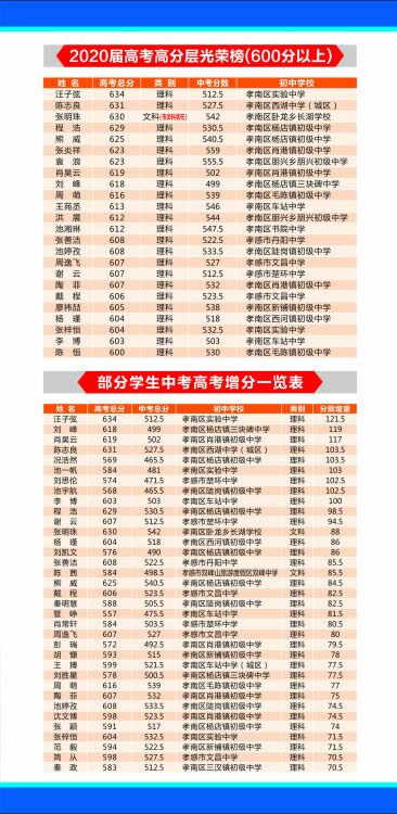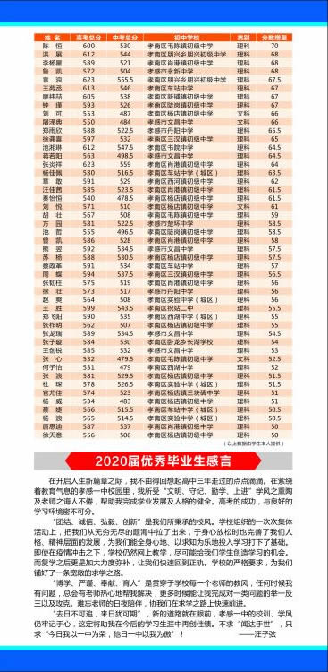 孝感一中2020年招生简章