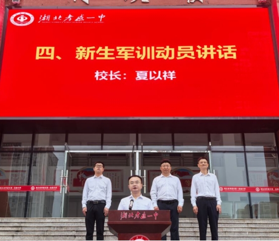 第四项,夏以祥校长发表了热情洋溢的动员讲话。他首先对教官们表示热烈欢迎和衷心感谢,并向踏入人生新阶段的高一新生们表示祝贺。夏校长强调了军训对于高中生培养爱国主义精神、增强组织纪律观念、锻造顽强意志品质的重要意义。他向同学们提出了三点期望:一是要端正态度,刻苦训练,磨练坚强意志;二是要尊重教官,听从指挥,培养优良作风;三是要注意安全,互帮互助,增强集体荣誉感。他相信,经过军训的洗礼,同学们必将以更挺拔的姿态、更饱满的精神迎接未来的学习生活挑战。