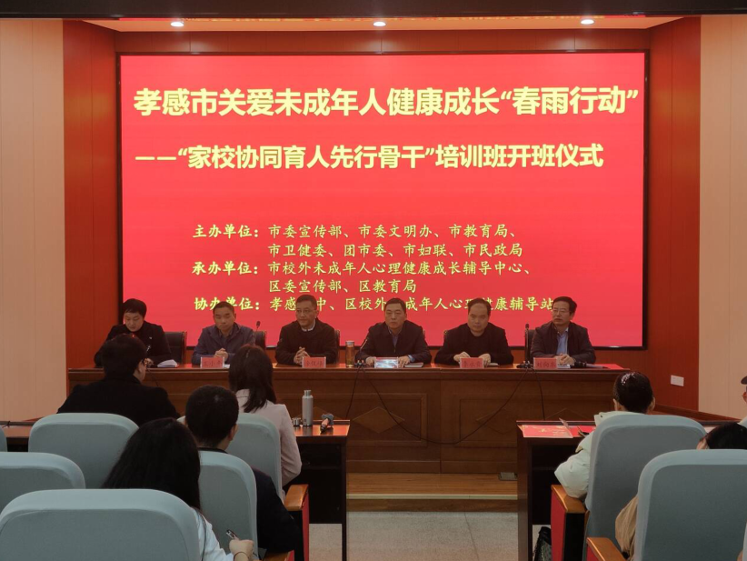 2023年11月19日星期日下午,孝感市关爱未成年人健康成长“春雨行动”——“家校协同育人先行骨干”培训班开班仪式,在孝感一中圆满举行!