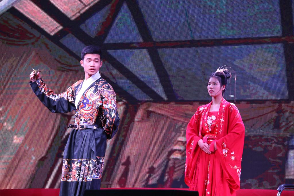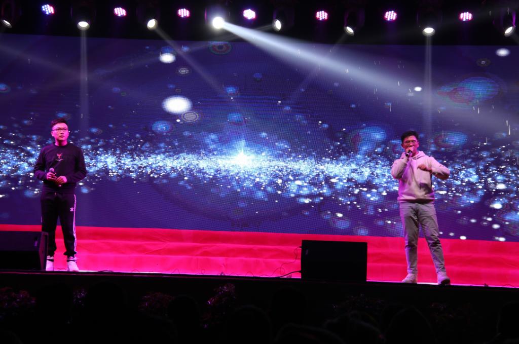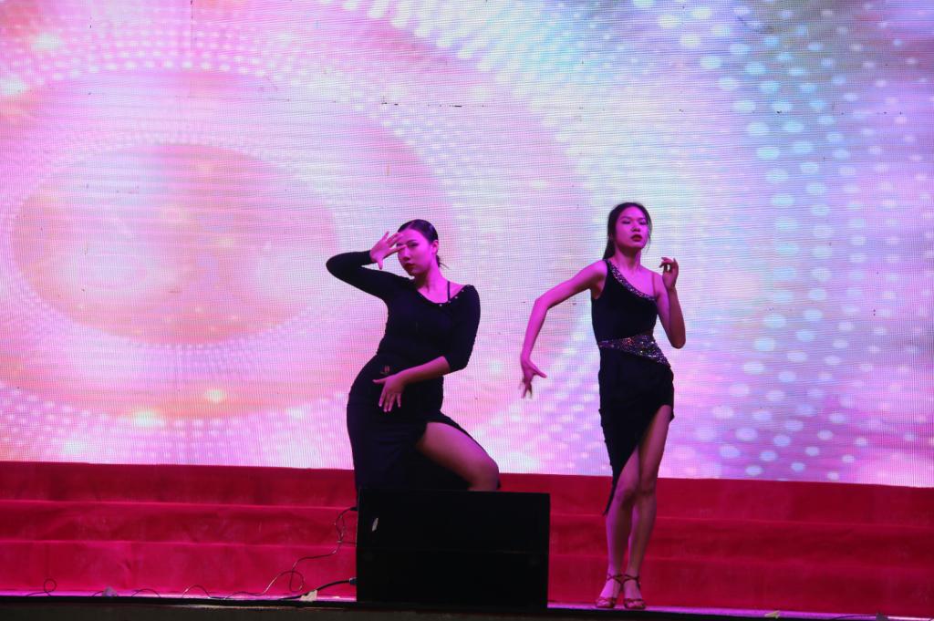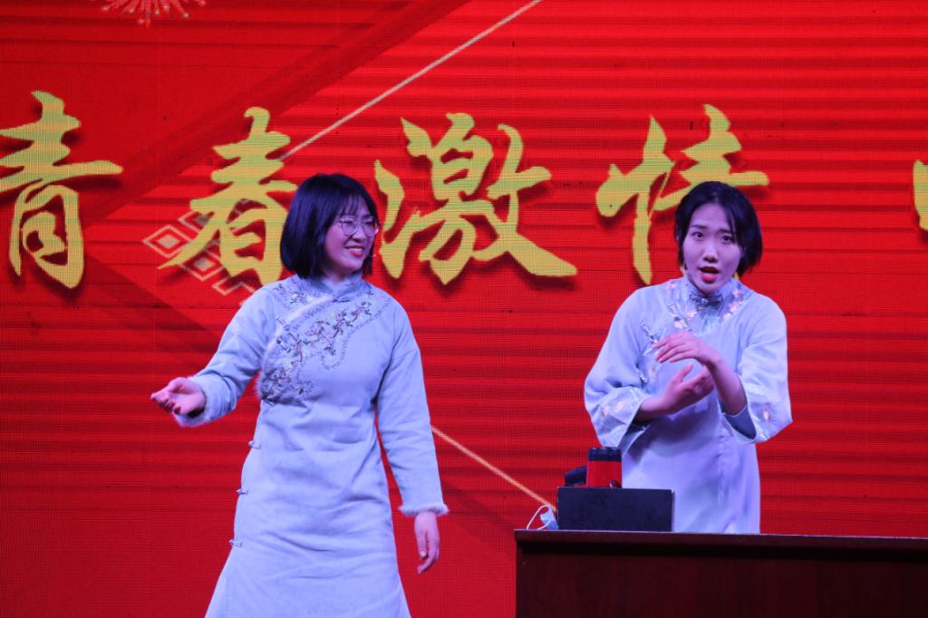 晚会在欢快的开场舞之后,学校党委书记付世俊致辞,他热情洋溢的讲话点燃了现场观众的激情。随后,丰富多彩的节目闪亮登场,晚会共有26个节目,有合唱、朗诵、爵士舞、情景剧、舞蹈、相声、小品、钢琴合奏、吉他弹唱;今年增加了一个新节目:瑶族竹竿舞表演;这些节目中有三个教师节目:一个是周兴老师和李文博老师合唱的歌曲《王妃》,一个是女教师表演的戏曲舞蹈》《梨花颂》,谢松老师带来了吉他弹唱《平凡之路》;在晚会进行中插播了两段视频,视频对我校近一年来的工作特别是疫情防控作了总结,最后,晚会在学生的视频祝福声中落下帷幕。演出过程中,现场气氛热烈,演员们的精彩表演将现场气氛一次次推向高潮。与此同时,晚会也在同步进行网络直播。