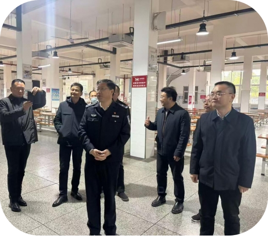 2024年12月5日,孝南区副区长、市公安局孝南分局党委书记、局长刘永新来我校食堂视察工作。作为我校食堂包保干部,为了落实学校食堂食品安全“两个责任”,刘副区长高度重视学校食品安全工作。本次来校视察,先对学校食堂就餐大厅与后厨情况进行现场参观,后对学校食堂制度建设及食品安全管理细节进行仔细询问,对学校食堂管理工作高度肯定,并强调食品安全无小事,督促学校管理人员对学校食品安全工作一定要高度重视、压实责任、落实到位。