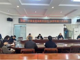 为进一步提升学校食堂管理水平,保障师生饮食安全与营养健康,3月26日上午10时,孝感一中在二号会议室召开了2025—2026学年膳食管理委员会及膳食监督家长委员会第三次全体会议。会议由资保中心主任陈斌主持,校领导、相关部门负责人及家长代表共同参会。