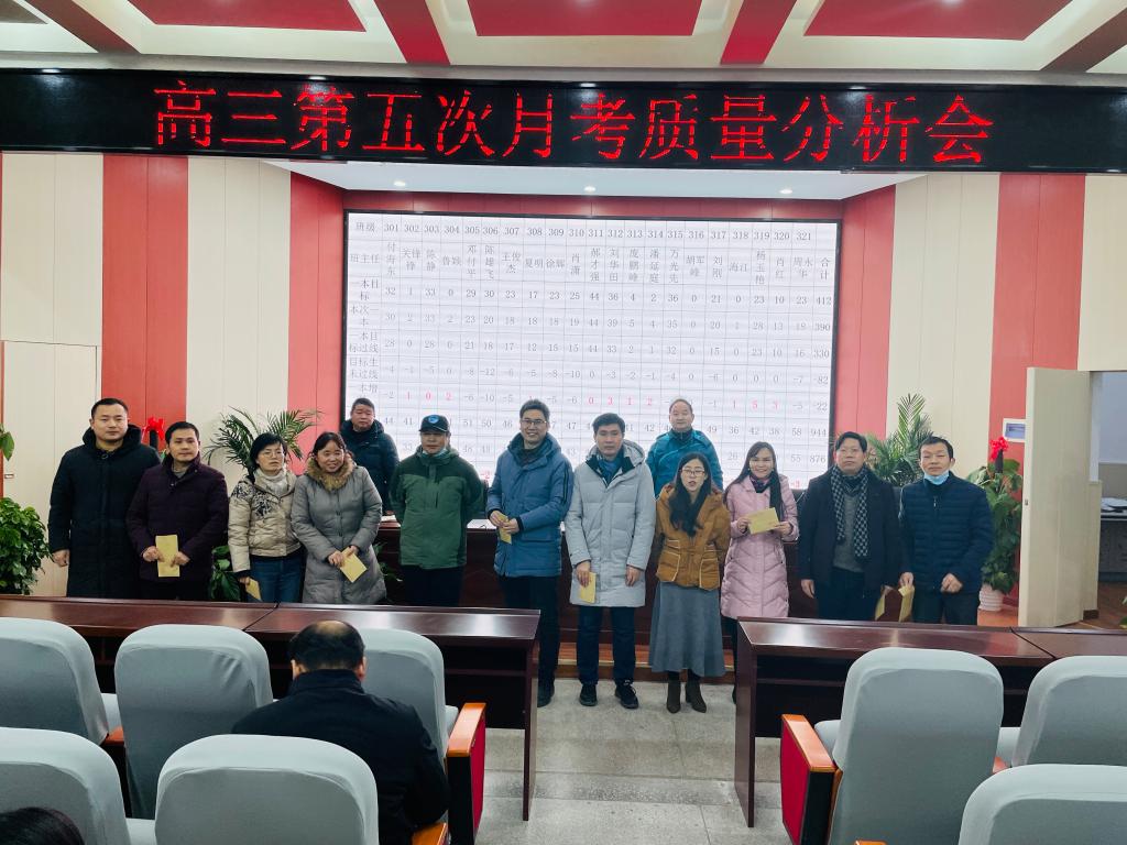 2021年1月6日星期三课间自习,高三年级在学术报告厅召开第五次月考质量分析会。会上,年级负责人杨顺云高…